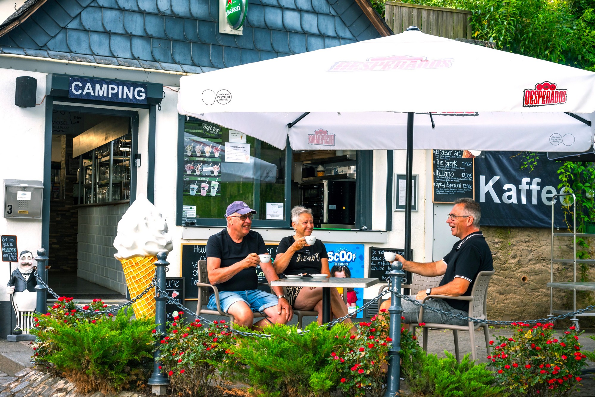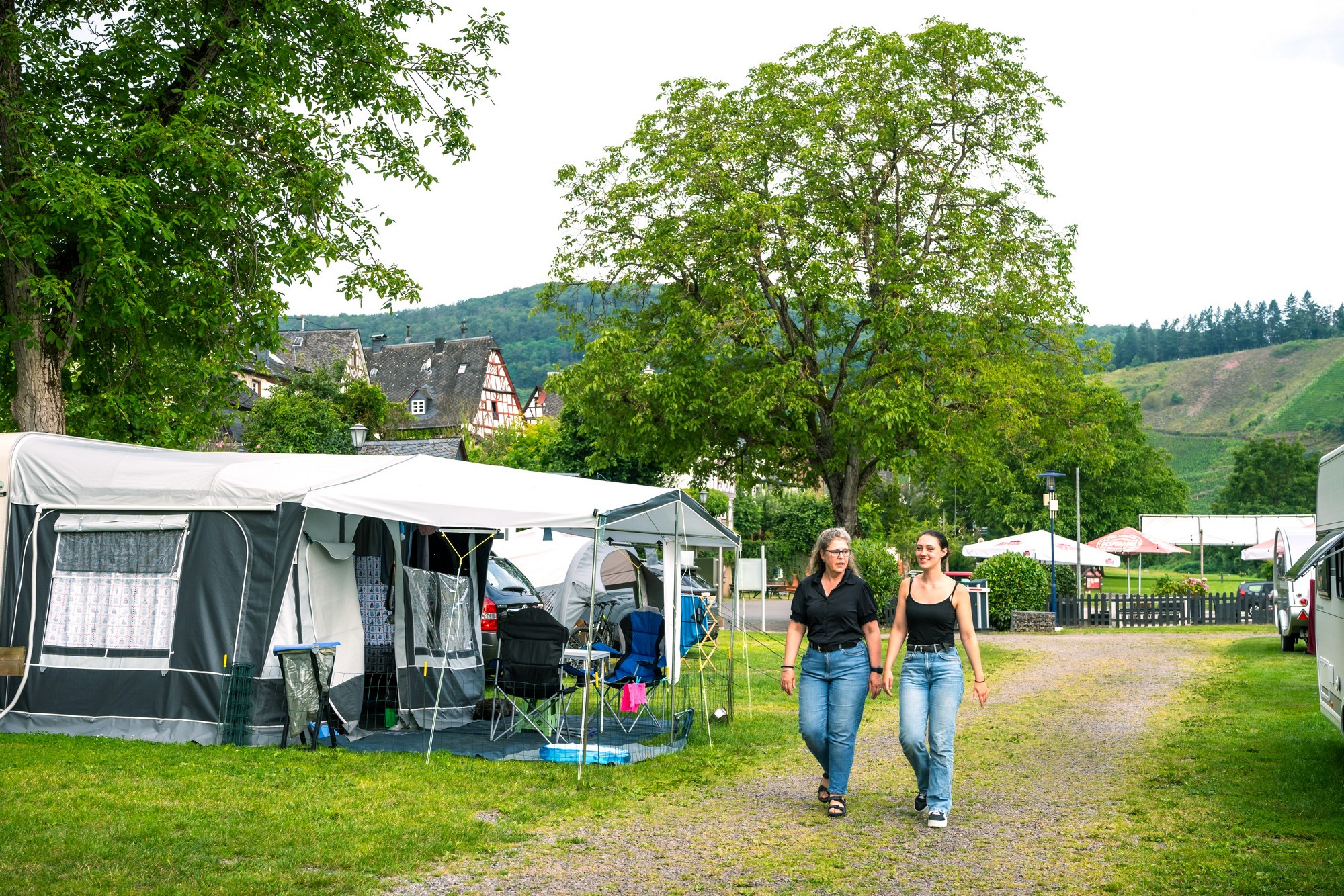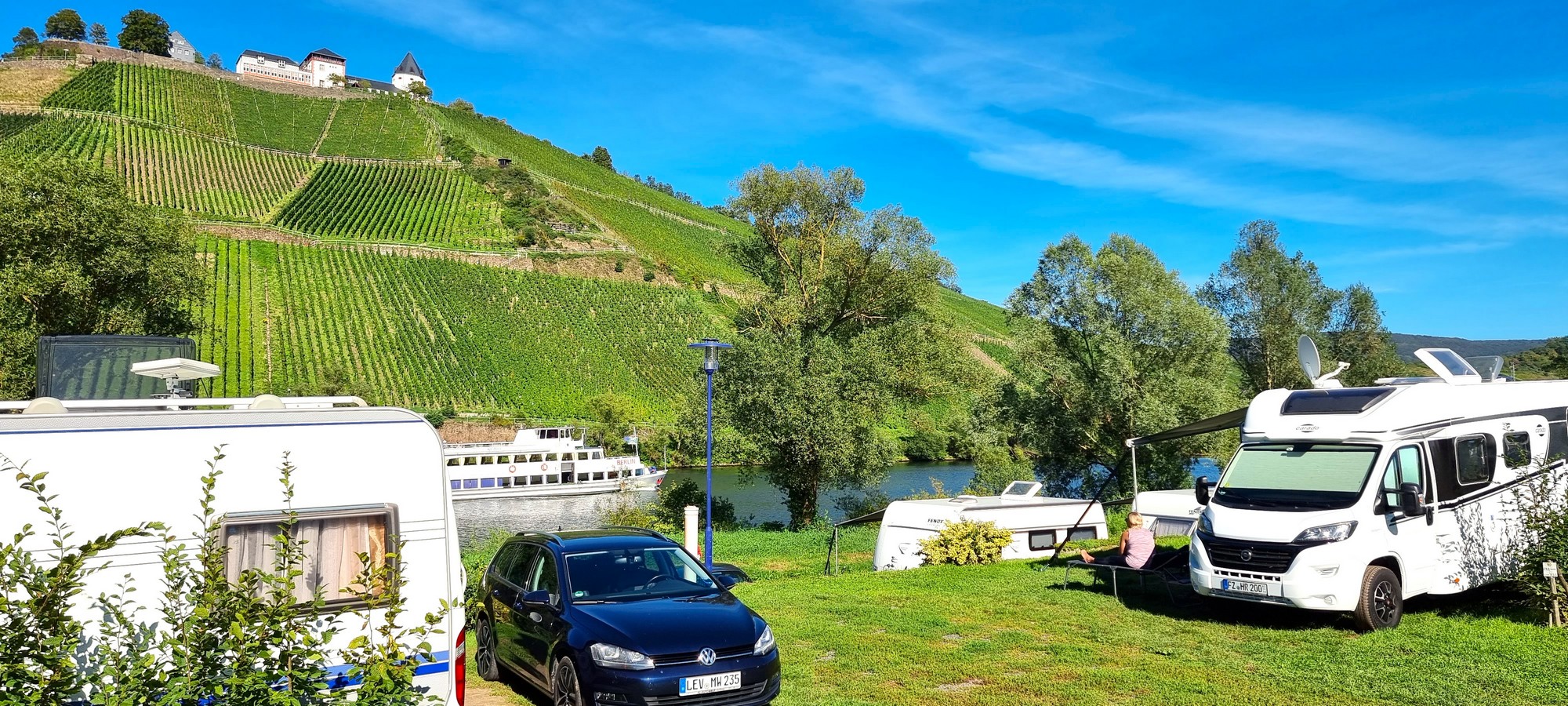 Entdecken Sie den Charme von Camping Pünderich an der Mosel. Blättern Sie durch die Fotos und lassen Sie sich von der Aussicht auf den Fluss und der gemütlichen Atmosphäre des Campingplatzes in Urlaubsstimmung versetzen.