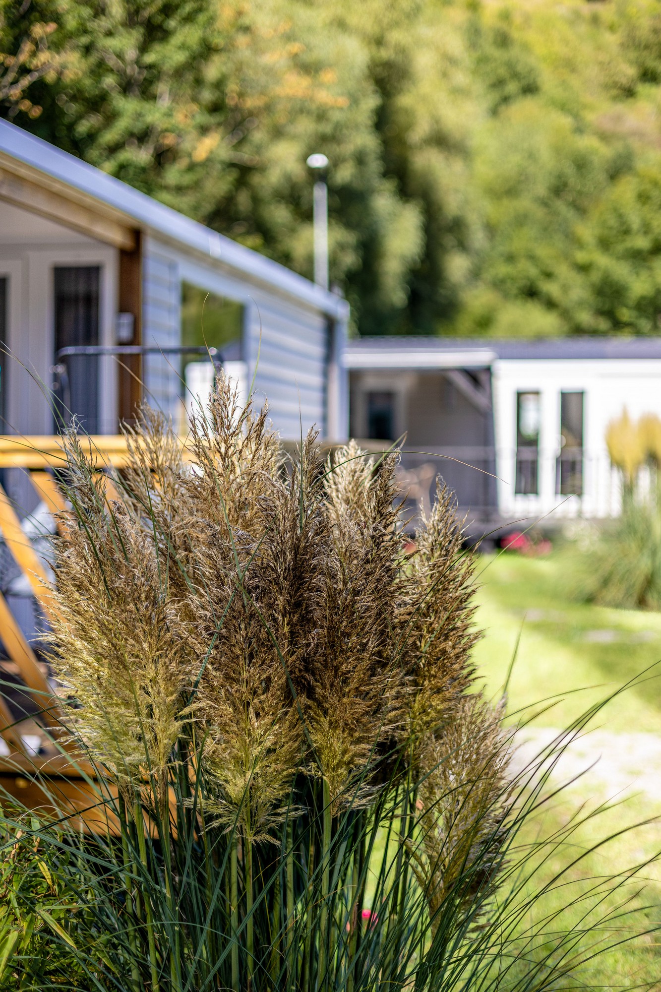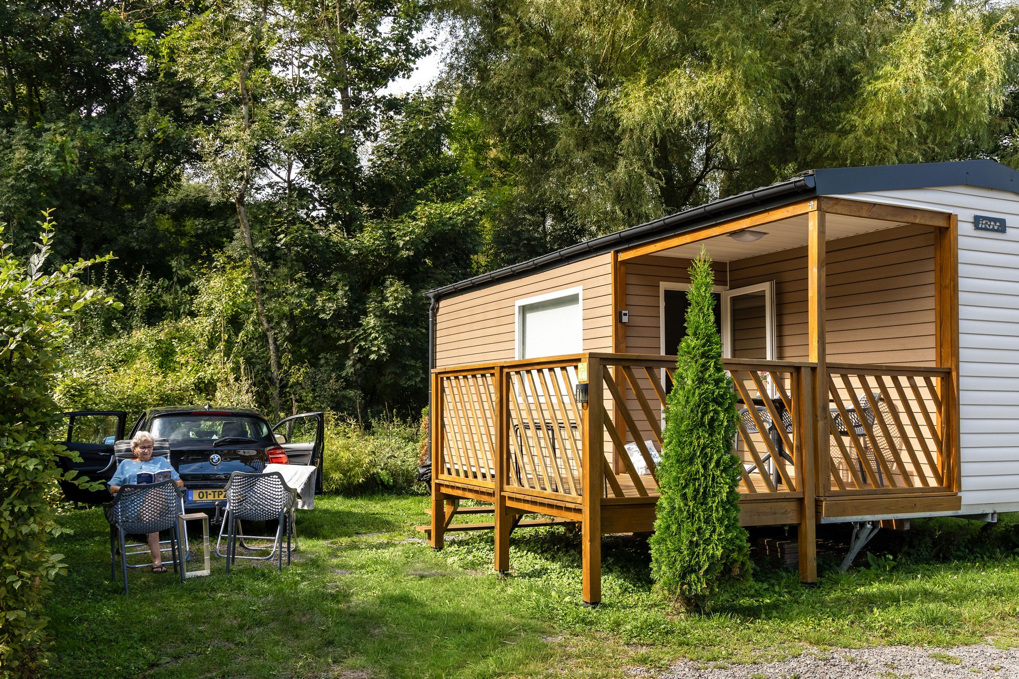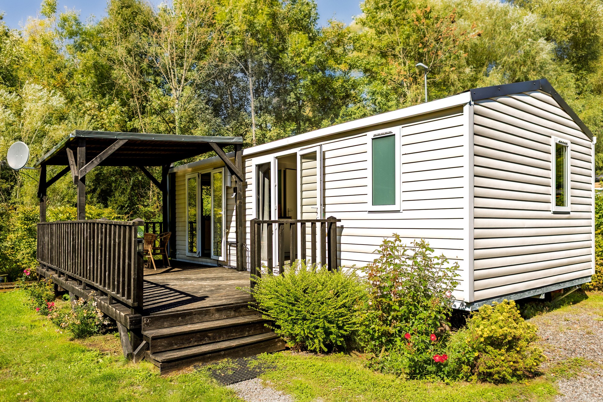 Viel Platz und Komfort, mit eigener Außenterrasse, Bad und Küche. Das Chalet Loggia 2 ist mit 2 Schlafzimmern und ein Wohnzimmer ausgestattet. Das Chalet liegt ruhig in einer natürlichen Umgebung am Rande des Campingplatzes, wo der Wald beginnt.