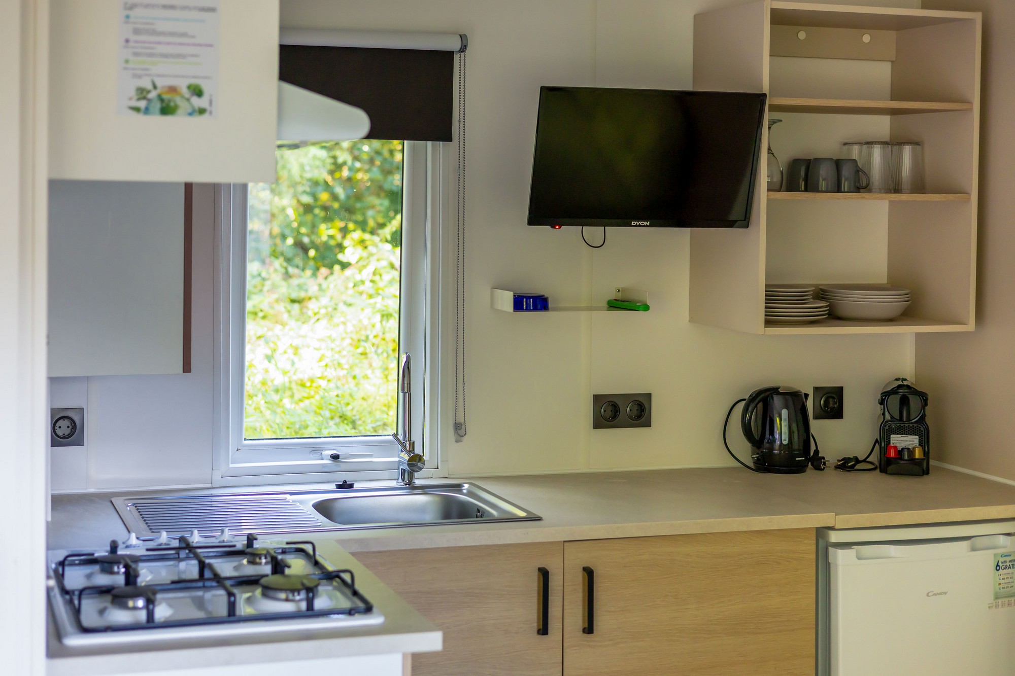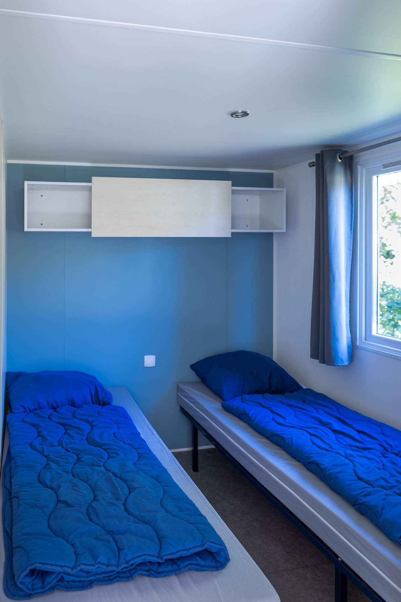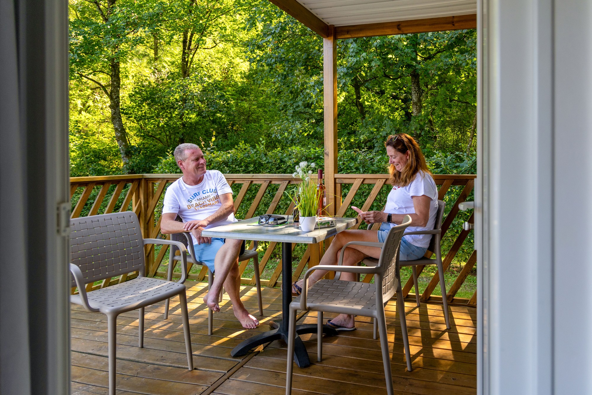 Viel Platz und Komfort, mit eigener Außenterrasse, Bad und Küche. Das Chalet Loggia 2 ist mit 2 Schlafzimmern und ein Wohnzimmer ausgestattet. Das Chalet liegt ruhig in einer natürlichen Umgebung am Rande des Campingplatzes, wo der Wald beginnt.